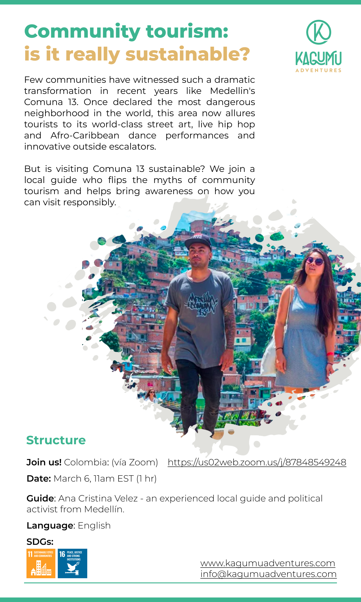 Presenter: Ana Cristina – Local tour guide from Comuna 13, political activist, and operations manager for Kagumu Adventures.