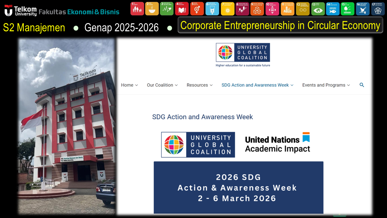 The discussion will be guided and facilitated by Ratna Lindawati Lubis https://www.sdgcompactfellows.org/ratna-lindawati-lubis, in her role as Senior Faculty for the course Corporate Entrepreneurship in Circular Economy at Telkom University. This session forms part of the ongoing even (genap) academic semester 2025–2026.